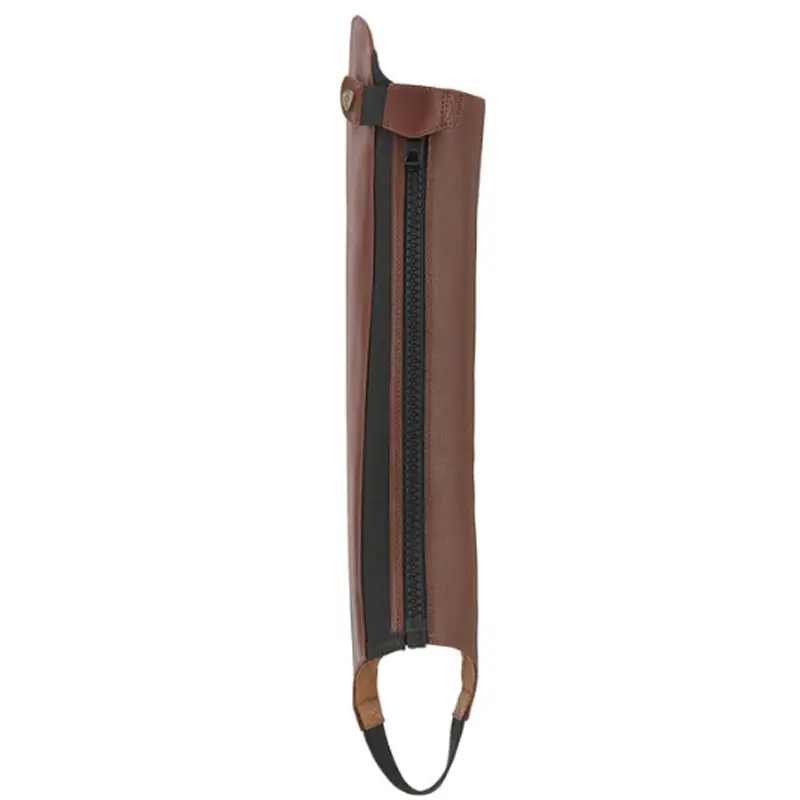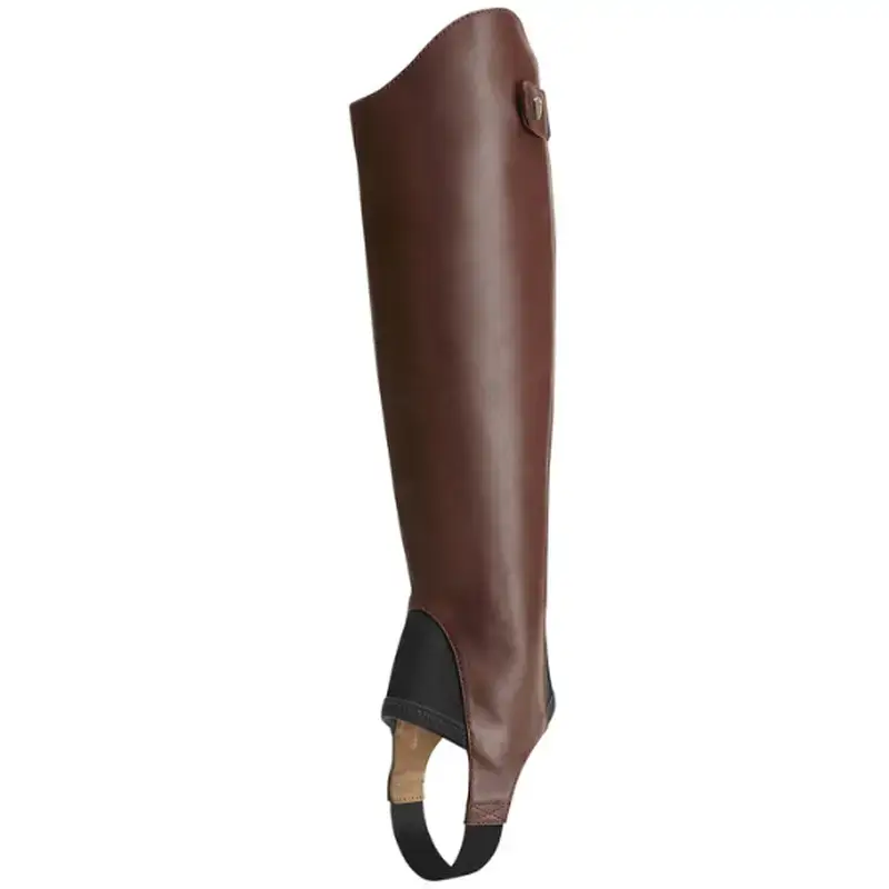 | De hoogte van deze mini-chaps is gemeten vanaf de knieholte tot aan de hak.