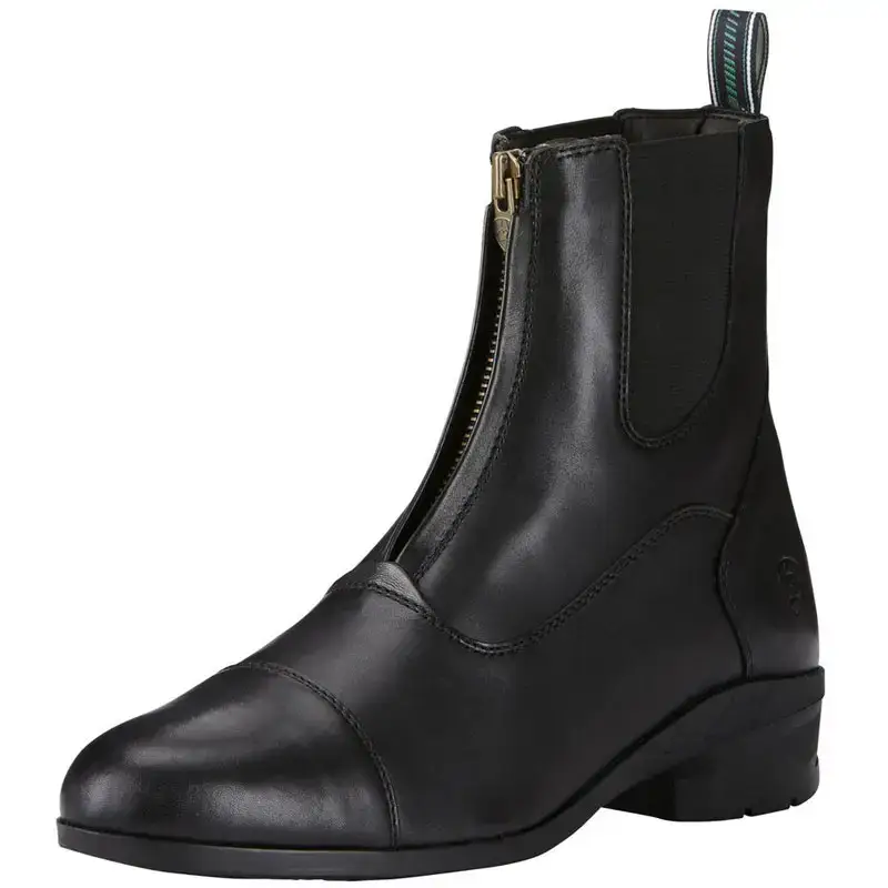 Aansluitende lederen heren rijschoenen van het merk Ariat geschikt voor dagelijks gebruik voor op en rond om de stal en uiterst geschikt voor het paardrijden. De rijschoenen zijn voorzien van vochtregulerende en ademende voering zodat de voeten droog blijven. De schoenen zijn uitgerust met stabiliserend comfort in combinatie met schokabsorberend hielkussentje voor optimale ondersteuning van de voeten. De schoenen hebben tevens een Duratread buitenzool in combinatie met de Ariat 4LR technologie en een antiek koperen YKK ritssluiting op de wreef voor een gemakkelijke instap.