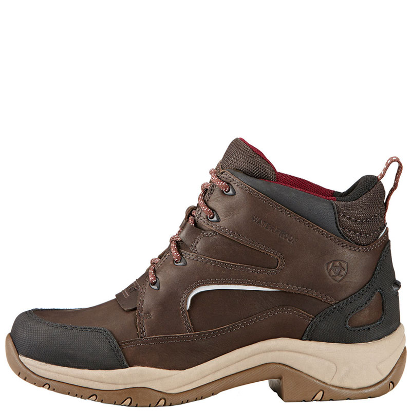 Waterdichte, geoliede, volnerf rundlederen stal/rijschoenen met waterdichte membraanconstructie om de voeten droog en comfortabel te houden. Overige eigenschappen van deze goede kwaliteit rij/stalschoenen zijn onder andere de Tec-Tuff gedeeltes op de neus en hiel van de schoen, de vochtregulerende voering, de schokabsorberende EVA midenzool, de Ariat’s ATS technologie en een Duratread buitenzool. Dit alle zorgt voor een goede stabiliteit en een goed draagcomfort.