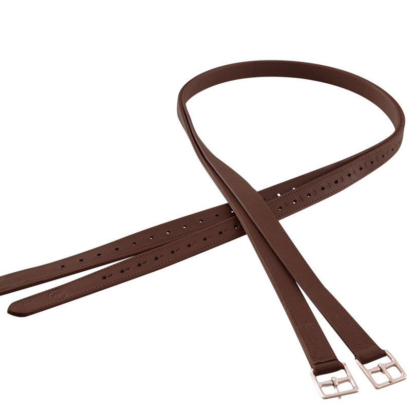 Zachte kalfslederen beugelriemen van het merk BR met nylon inlage wat uitrekken tegen gaat. De beugelriemen zijn voorzien van rvs gebogen gespen.