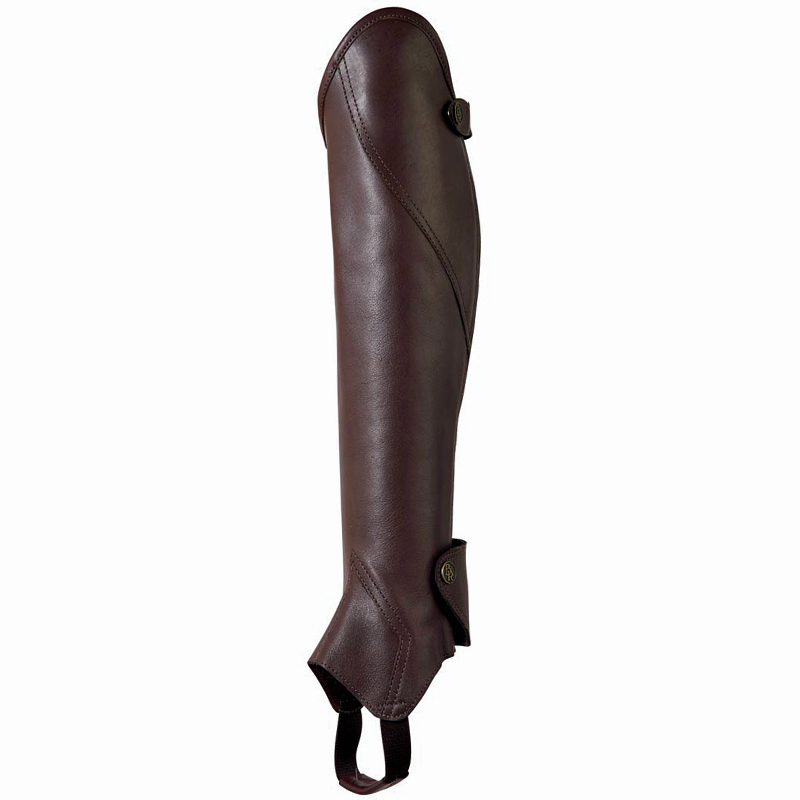 Soepele lederen chaps van het merk BR model Latenzo. De chaps zijn voorzien van ritssluiting in combinatie met elastiek aan de achterzijde en zijn afgewerkt met 5 cm hoog uitgesneden boog.
