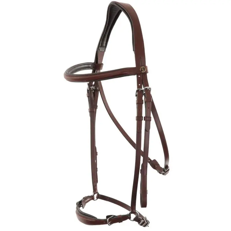 Hoofdstel vervaardigd uit Europese kwaliteit leer met zacht gevoerd anatomisch gevormd kopstuk en verstelbare africhtingsneusriem. Het hoofdstel is afgewerkt met ronde, glanzende, zilverkleurige fournituren en wordt geleverd zonder teugels.