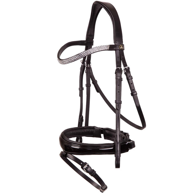 BR hoofdstel Windermere is voorzien van een anatomisch gevormd zacht gevoerd kopstuk met extra vrijheid achter de oren van het paard. De gebogen frontriem is ingelegd met drie rijen echte Stellux kristallen. Het hoofdstel is uitgevoerd met een circa 4 cm brede gecombineerde aansnoerneusriem welke voorzien is van zachte kaakbeschermer. Dit hoofdstel wordt geleverd exclusief teugels.