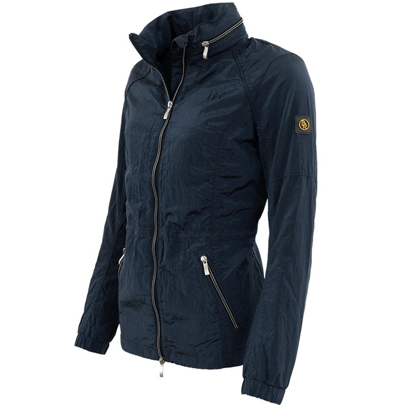 De BR jas Amy Blueberry is een modieuze dames zomer jas voorzien van verborgen capuchon in de kraag, tweeweg ritssluiting en zakken met ritssluiting. De jas is afgewerkt met tone-in-tone geprint BR logo op de borst en BR badge op de linker mouw.