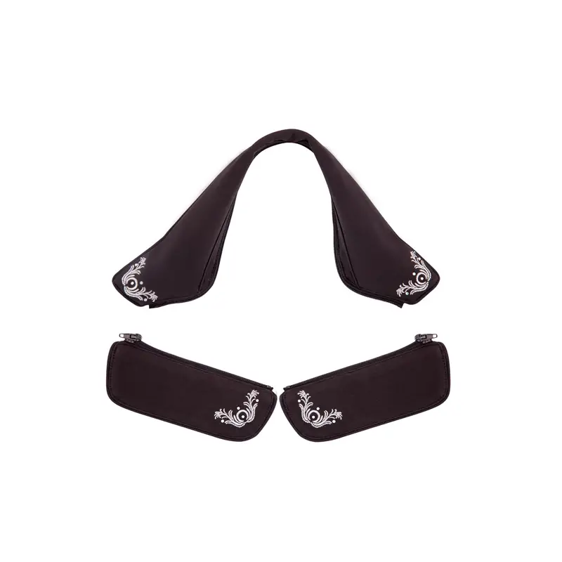 * voorzien van zilverkleurige borduursels
