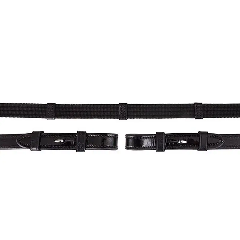 BR Linnen Teugel Ronde Gesp, Blinde Sluiting, Lak, 19 mm. Mooie kwaliteit lederen teugel van het merk BR. De uiteinde van de teugels zijn afgewerkt in lakleder in combinatie met een blinde haakjessluiting. De teugels zijn 19 mm breed en zijn afgewerkt met zilverkleurige gespen in een rond model.