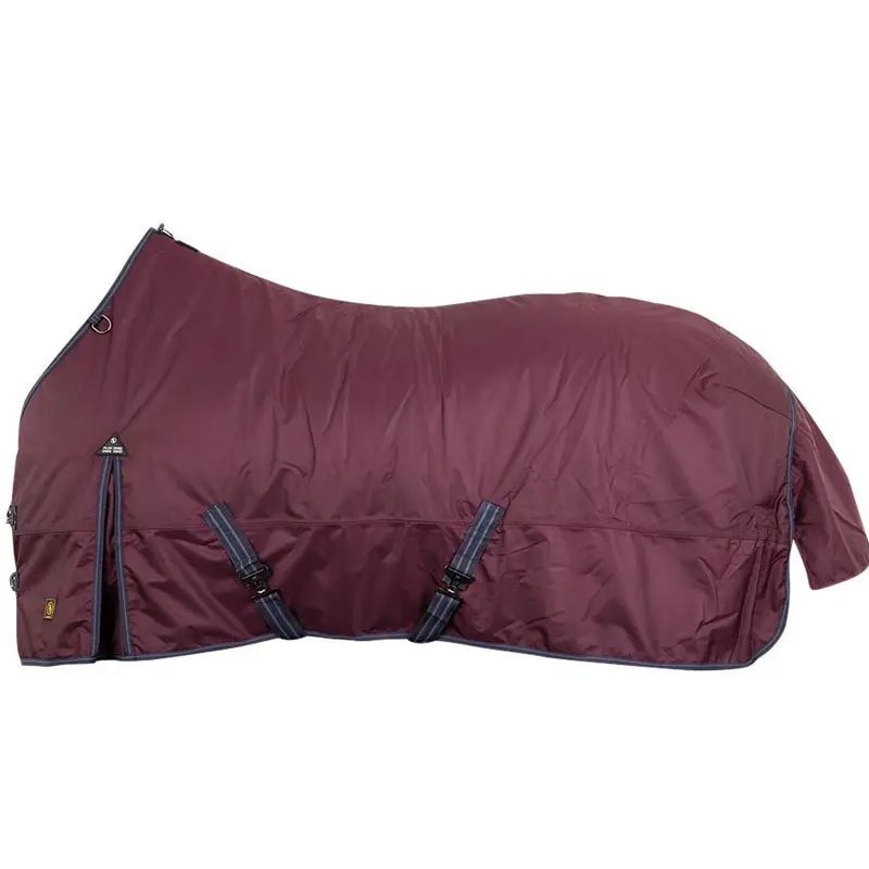 BR outdoordeken 1200D – 240 grams. Deze deken is gemaakt uit 1200D waterdicht polyester in combinatie met een antistatische voering en 190T nylon op het borst gedeelte en aan de onderzijde van de deken ter voorkoming van schuren en ter voorkoming dat de regen omhoog trekt. De deken is voorzien van dubbele verstelbare voorsluitingen, loopsplitten, verstelbare kruissingels, verstelbare afneembare lieskoorden en staartflap.