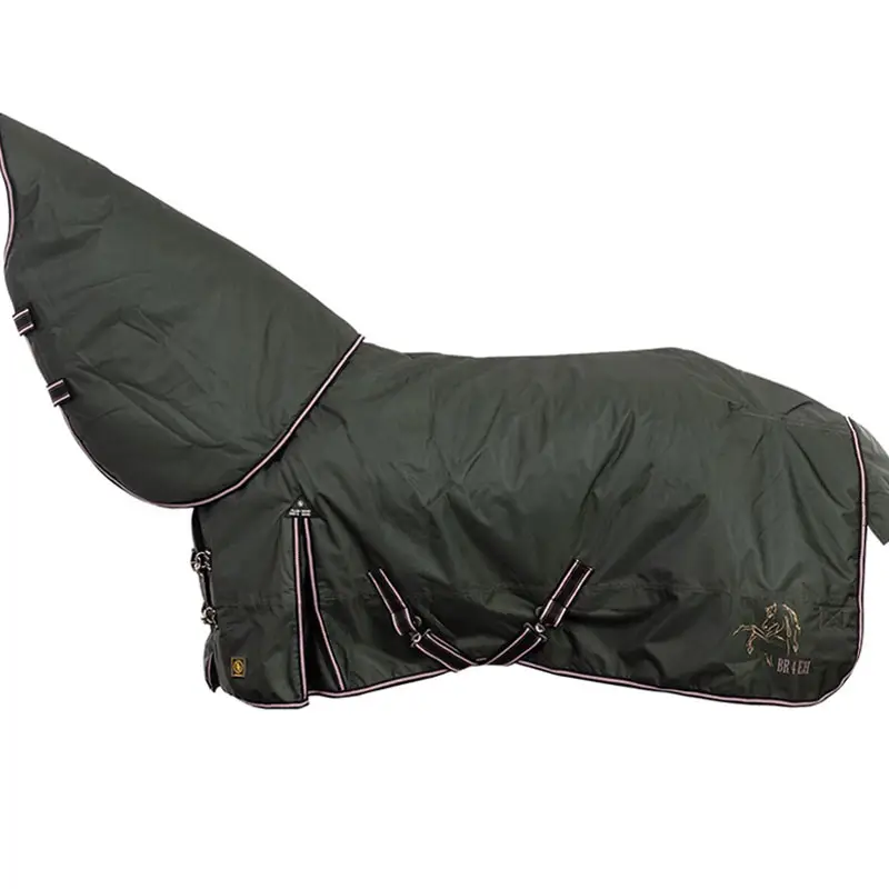 De BR outdoordeken 4-EH Combo Rosin is een waterdichte deken met 340 grams polyfill vulling uit de BR 4-Ever Horses collectie. De deken is gemaakt uit 600D waterdicht polyester in combinatie met een antistatische voering en 190T nylon op het borst gedeelte en aan de onderzijde van de deken ter voorkoming van schuren en ter voorkoming dat de regen omhoog trekt. De deken heeft een afneembaar halsdeel welke bevestigd wordt aan de deken met twee klittenbandsluitingen en een tweeweg ritssluiting. De voorzijde van het halsstuk is te sluiten met twee aparte klittenbandsluitingen. Verder is deze deken voorzien van dubbele, verstelbare voorsluitingen, loopsplitten, verstelbare kruissingels, verstelbare afneembare lieskoorden en staartflap. * 340 grams polyfill gevoerde deken * afneembaar halsdeel door het gebruik van een rits en klittenband * waterdicht 5000 mm * ademend 4000 mm * winddicht * dubbele verstelbare voorsluitingen * loopsplitten * verstelbare kruissingels * verstelbare en afneembare lieskoorden * staartflap * bekijk de maattabel voor het kiezen van de juiste