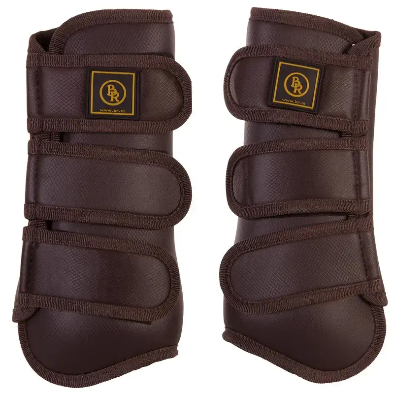 De BR Pro Max peesbeschermer heeft een sterke, schokabsorberende neopreen binnenvoering van 5 mm. Het buitenmateriaal is gemaakt van sterk kunstleder. De harde en naar het paardenbeen gevormde kunststof schaal in de binnenzijde van de peesbeschermer zorgt voor optimale bescherming van het paardenbeen.