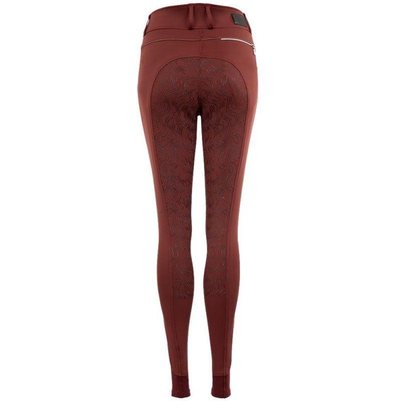 Dames rijbroek Rune is voorzien van een hoge elastische tailleband met dubbele schuifsluiting en riemlussen. De rijbroek heeft een Full Grip siliconen zitvlak in combinatie met verborgen zakken met ritssluiting aan de voorzijde en is afgewerkt met subtiele zilverkleurige steentjes.
