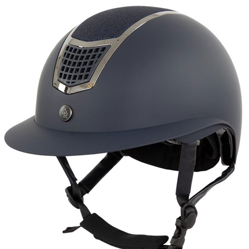 De BR rijhelm Lambda Plus Gitter voldoet aan de CE EN 1384:2023 veiligheidsnormering en is voorzien van ventilatie aan de voor en achterzijde. Deze rijhelm is afgewerkt met stijlvolle glitters in het midden omringd door een chrome rand in combinatie met een grote klep. De voering is vervaardigd uit Cooldry materiaal welke snel droogt en het hoofd koel houdt. De voering is uitneembaar en machinewasbaar.