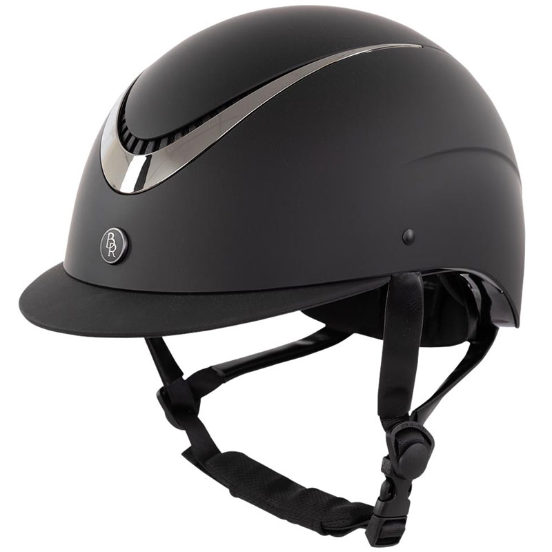 De BR Rijhelm Theta Painted Zwart/Gunmetal heeft een normaal formaat klep en is uitgevoerd in een Matte schaal voorzien van ventilatie in combinatie met een chrome rand over de voorzijde van de cap gecentreerd.