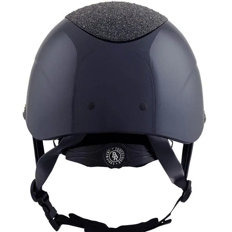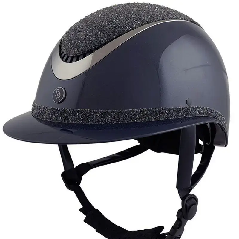 De BR Rijhelm Theta Plus Dazzling Glamourous Glossy Navy/Gunmetal is uitgevoerd met een Glossy glanzende schaal. De cap is afgewerkt met een 3D glitter top in combinatie met subtiele imitatie kristallen gecentreerd in het midden met hierom heen een chrome rand en een grote klep met hierboven een glitter rand.
