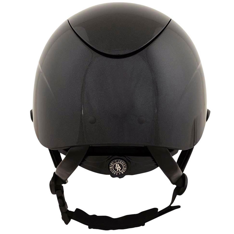 De BR Rijhelm Theta Plus Glossy Zwart/Gunmetal heeft een grote klep en is uitgevoerd in een Glossy glanzende schaal voorzien van ventilatie in combinatie met een chrome rand over de voorzijde van de cap gecentreerd.