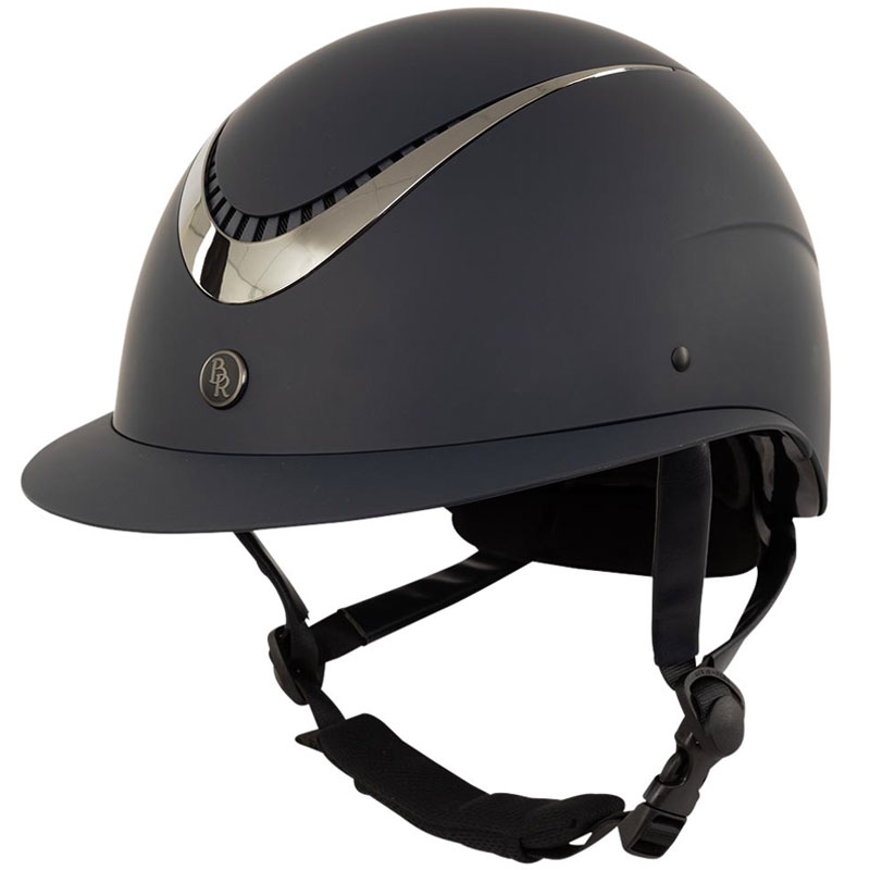 De BR Rijhelm Theta Plus Painted Navy/Gunmetal heeft een grote klep en is uitgevoerd in een Matte schaal voorzien van ventilatie in combinatie met een chrome rand over de voorzijde van de cap gecentreerd.