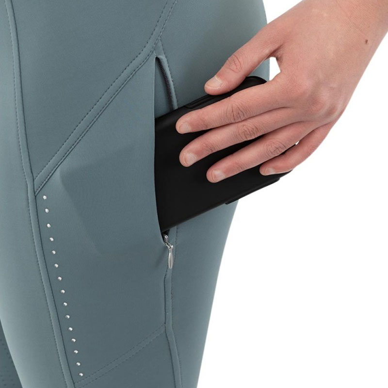 De BR rijlegging Aukje Goblin Green is afgewerkt met strass steentjes op het been. De legging is voorzien van mobiele telefoonzak met ritssluiting en heeft een Full Grip siliconen zitvlak. De elastische comfortabele stof is te gebruiken in alle seizoenen en voelt tevens zacht aan op de huid.