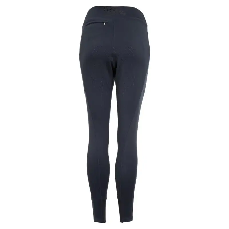 Ademende en vochtregulerende dames rijlegging uit de BR Passion collectie voorzien van mobiele telefoonzak op het been, zak met ritssluiting aan de achterzijde en een Full Grip siliconen zitvlak. De rijlegging is afgewerkt met print op de achterzijde van de tailleband en op het linker been.