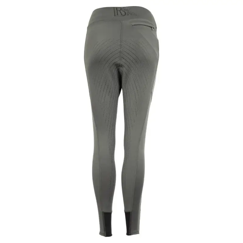Ademende en vochtregulerende dames rijlegging uit de BR Passion collectie voorzien van mobiele telefoonzak op het been, zak met ritssluiting aan de achterzijde en een Full Grip siliconen zitvlak. De rijlegging is afgewerkt met print op de achterzijde van de tailleband en op het linker been.