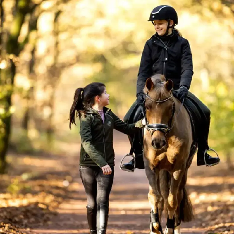 De BR softshell jas 4-EH Brett kids is een waterafstotende jas matchend bij de BR 4-Ever Horses collectie. De jas is met teddy fleece gevoerd en voorzien van afneembare capuchon, zakken met ritssluitingen en logo op de borst en op de mouw.