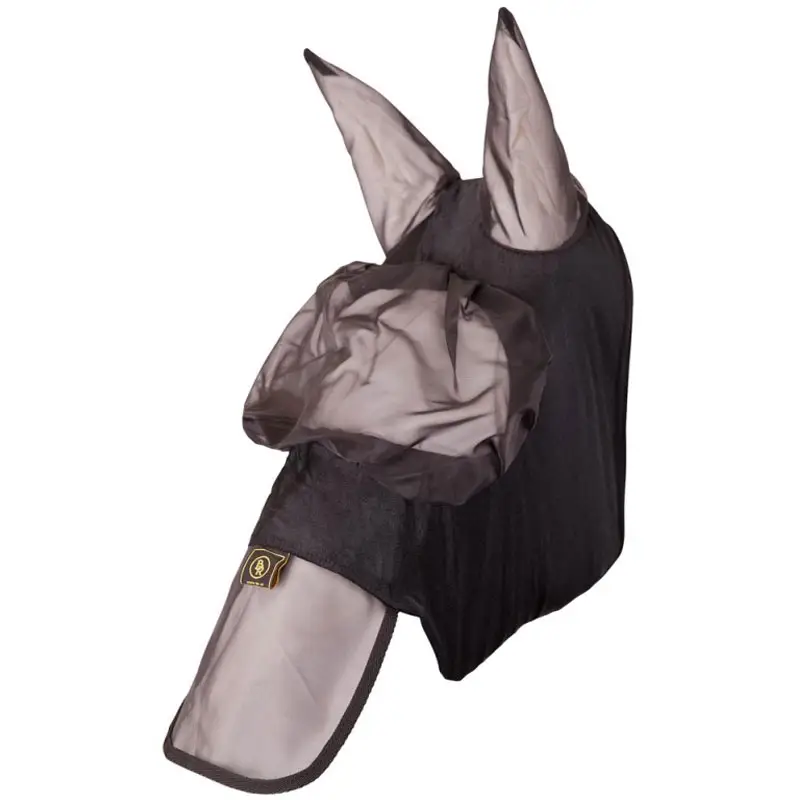 BR vliegenmasker vervaardigd uit lycra materiaal in combinatie met polyester mesh. Het masker is voorzien van oren en neusflap en heeft geen sluitingen. Door het elastische lycra is dit masker eenvoudig om te doen.