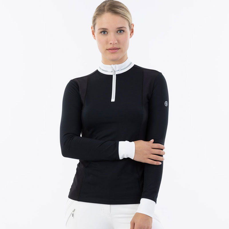 Het BR wedstrijdshirt Dide heeft een getailleerde pasvorm en is voorzien van lange mouwen en opstaande boordje met rits. Het shirt is afgewerkt met inserts van geribbelde stof heeft een print op de achterzijde van de schouder en is afgewerkt met BR logo op de linker mouw.