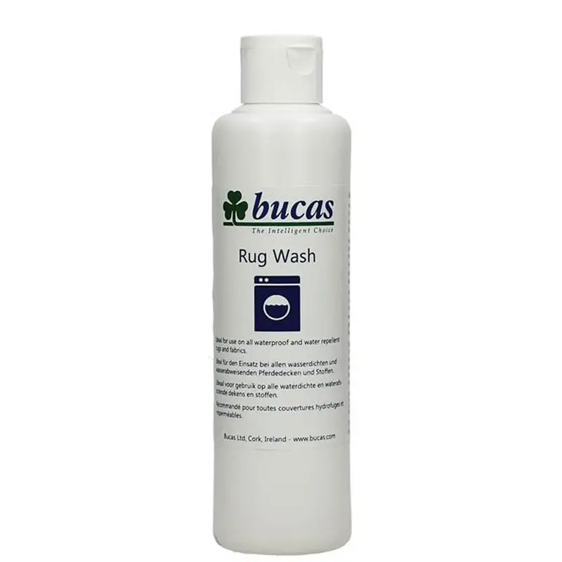 Bucas Rug Wash is geschikt voor het wassen van alle waterdichte en ademende paardendekens en stoffen. Voor het behouden van Uw garantie adviseerd Bucas ten aller tijden de Bucas Wash te gebruiken voor de Bucas dekens. Dit speciale fosvaatvrije wasmiddel is geschikt voor alle waterdichte en waterafstotende dekens, plus andere waterdichte textiel soorten.