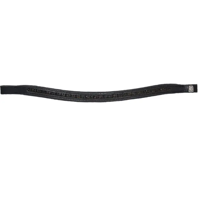 Gebogen gevoerde frontriem van het merk Cavallo voorzien van donkerbruin kleurige Swarovski Elements.