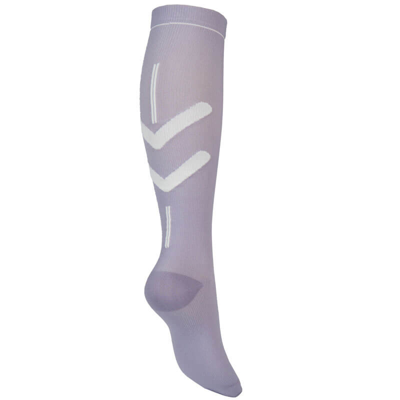 Compressie Paardrijsokken EQPRO Lilac Coral met een compressie van 20-33HG. Door de druk van de compressie wordt bij de sokken de bloedsomloop gestimuleerd. Dit resulteert in minder vermoeide voeten.