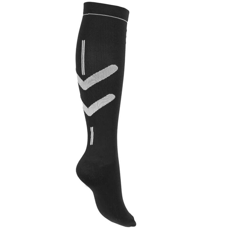 Compressie Paardrijsokken EQPRO Zwart met een compressie van 20-33HG. Door de druk van de compressie wordt bij de sokken de bloedsomloop gestimuleerd. Dit resulteert in minder vermoeide voeten.