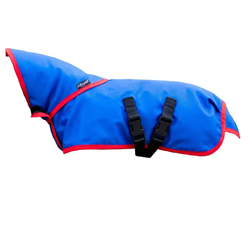 De Crafty Ponies buitendeken is voorzien van waterdicht materiaal aan de buitenzijde in combinatie met halsstuk en staartflap waardoor jouw Crafty pony tijdens slecht weer droog blijft. De deken is donkerblauw met een rode rand en is uitgevoerd met loopsplitten, kruissingels en is volledig gevoerd voor de kou tegen te gaan.