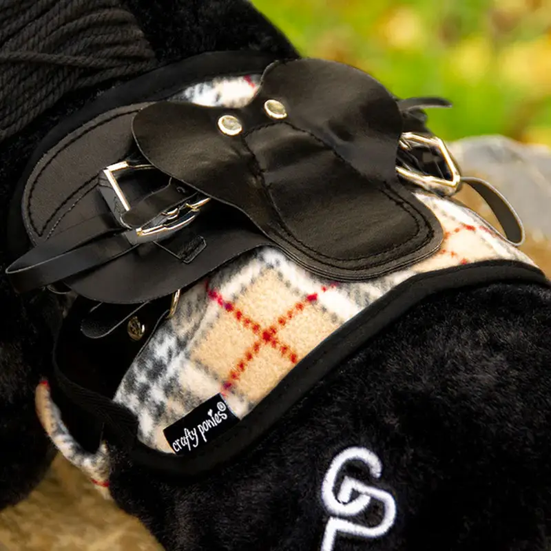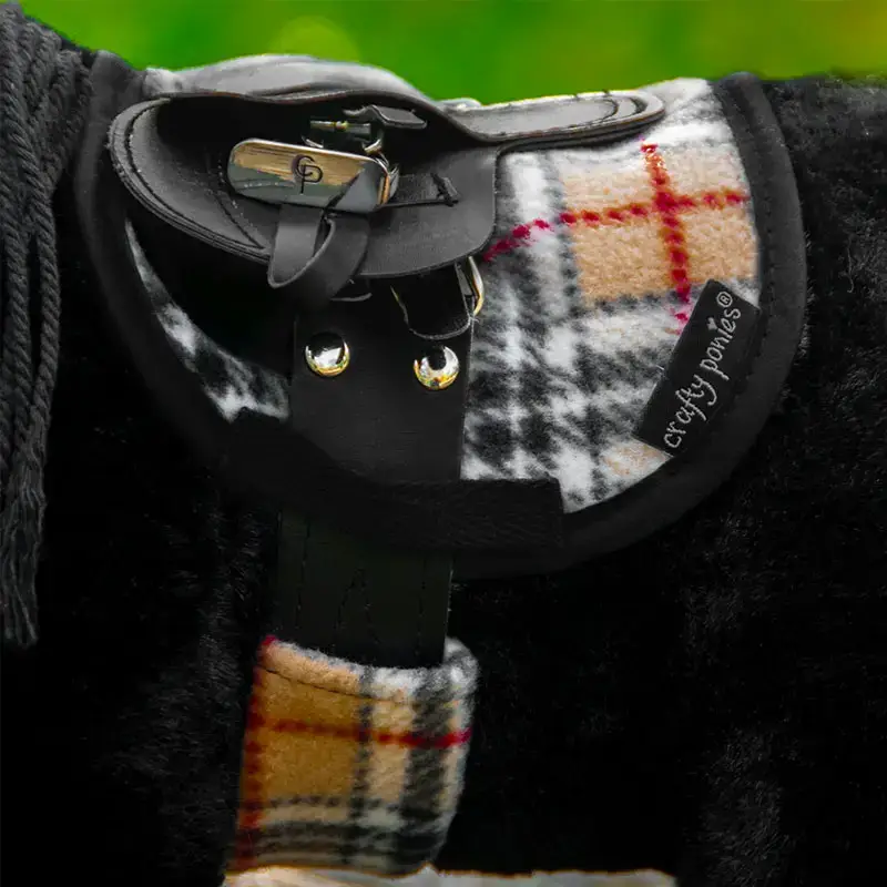UitverkochtCrafty Ponies Dekje & Singelhoes beige geblokt. Het zadeldekje heeft singelbanden om het zadel op zijn plaats te houden, en de singelhoes glijdt netjes over de Crafty Ponies singel. Het instructieboekje helpt kinderen meer te weten te komen over zadeldekjes en singelhoezen.