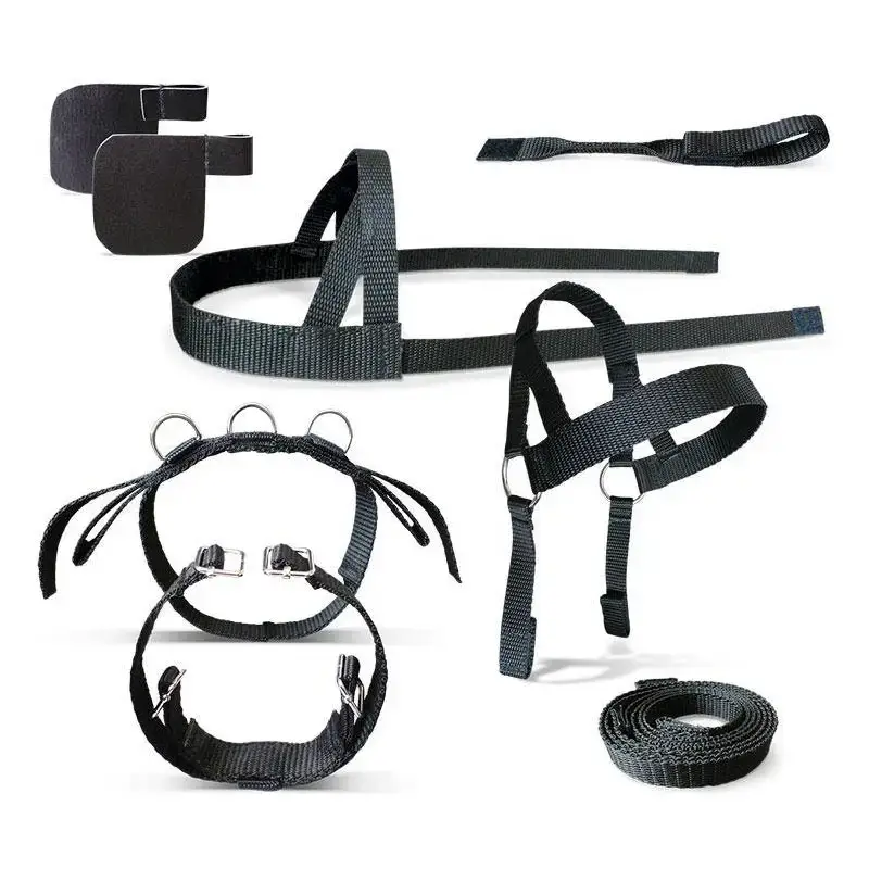 Inhoud enkelspanset: Zwart synthetische enkelspan, Oogkleppen, Schoftje, Borsttuig, Staartriem, Teugels, Singel en een A4-formaat, 8 pagina’s Nederlands instructieboekje.