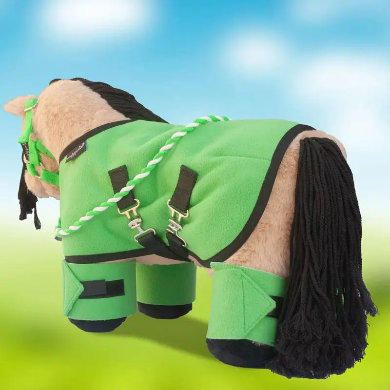UitverkochtDe Crafty Ponies Fleecedeken Set Groen bevat alles wat je Crafty Pony paardenknuffel nodig heeft om zich comfortabel te voelen in de stal of zelfs tijdens het reizen naar een show! Er is een halster en touw, zodat jij je Crafty Pony knuffelpaard vast kunt maken terwijl je zijn deken en bandages aandoet. De instructieboekjes helpen kinderen om meer te leren over de items in de fleecedeken set.