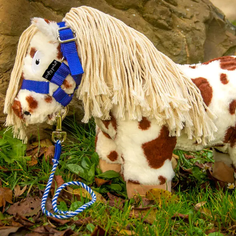 Het Crafty Ponies Halstertouw Blauw is gemaakt van een synthetisch koord en is voorzien van een karabijnhaak, net zoals bij een “echt” halstertouw. Compleet geleverd met instructieboekje dat kinderen helpt te leren over halstertouwen.