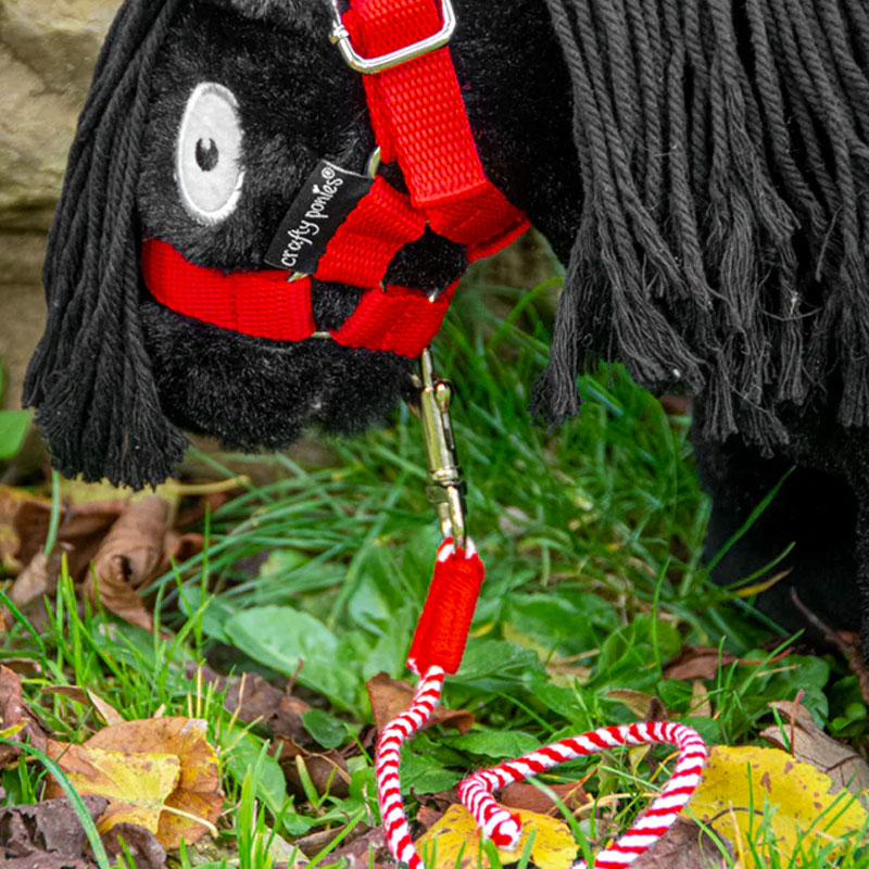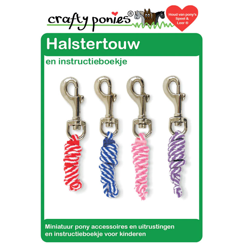 Het Crafty Ponies Halstertouw Rood is gemaakt van een synthetisch koord en is voorzien van een karabijnhaak, net zoals bij een “echt” halstertouw. Compleet geleverd met instructieboekje dat kinderen helpt te leren over halstertouwen.