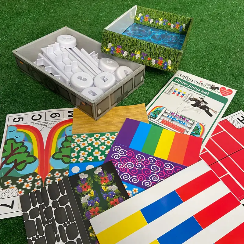 De Crafty Ponies Spring Concours Set is een geweldig alternatief om met je Crafty Pony paardenknuffel te spelen wanneer je niet naar buiten kunt. Doe een wedstrijd met je familie of vrienden, of gewoon in je eentje! Eerst maak je een springparcours, vervolgens probeer je de baan over te komen. Degene met de minste fouten wint, net als bij een echt concours. Het instructieboekje helpt kinderen om te leren over springconcours.