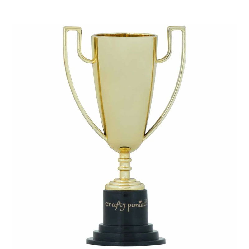 Crafty Ponies Trofee en Rozetten Set. Met set wordt elke speelsessie een echt paardenfeestje. De set bevat een mooie gouden trofee en vier kleurrijke rozetten (rood, blauw, groen, geel), perfect voor kinderen die wedstrijden willen organiseren. Laat je Crafty Pony springen, stralen of showen en beloon hem of haar met een prachtige rozet of trofee.