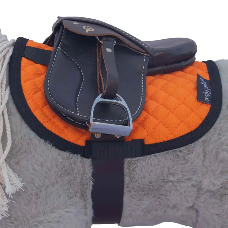UitverkochtCrafty Ponies Zadeldek Premium Oranje. Zadeldekje voor jouw Crafty paardenknuffel met singellussen om zadellussen om het zadel op zijn plaats te houden. Het dekje heeft geruite gestikte blokjes en is erg mooi in combinatie met het Crafty Ponies zadel Premium. Het dekje zorgt voor een goede druk verdeling op de rug jouw Crafty Pony en absorbeert tevens overtollig zweet. Het instructieboekje helpt kinderen meer te weten te komen over zadeldekken.