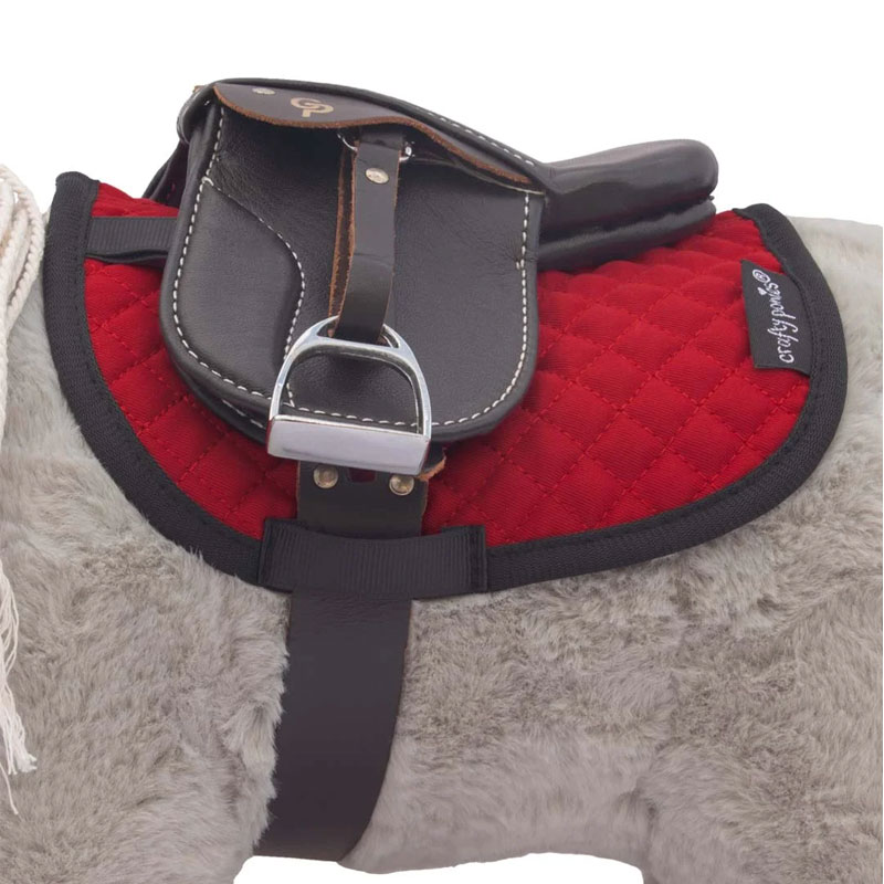 UitverkochtCrafty Ponies Zadeldek Premium Rood. Zadeldekje voor jouw Crafty paardenknuffel met singellussen om zadellussen om het zadel op zijn plaats te houden. Het dekje heeft geruite gestikte blokjes en is erg mooi in combinatie met het Crafty Ponies zadel Premium. Het dekje zorgt voor een goede druk verdeling op de rug jouw Crafty Pony en absorbeert tevens overtollig zweet. Het instructieboekje helpt kinderen meer te weten te komen over zadeldekken.
