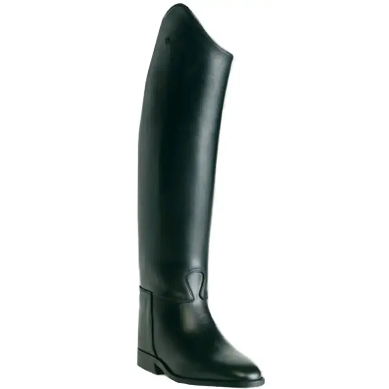 Dressuurlaarzen gemaakt van volnerf rundsleder. De laarzen hebben een lederen voering, rubber zool en zijn voorzien van 6 cm hoog uitgesneden dressuurboog.