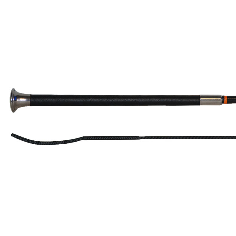 Dressuurzweep van het merk Dobert waarvan de kern gemaakt is uit Fiberglas welke met nylon is bekleed. De zweep is afgewerkt met een lederen handgreep met zilverkleurige knop.