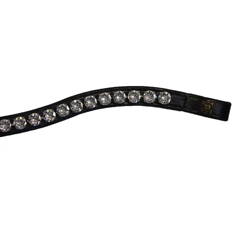 Gebogen model frontriem uit de Dobert Classic collectie vervaardigd uit Europese kwaliteit leer. De frontriem is afgewerkt met een groot formaat Swarovski.