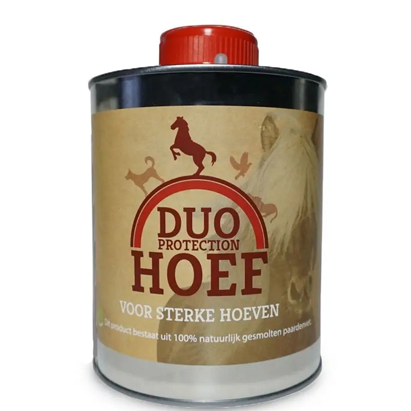 Duo Hoef 1 ltr. Uit ervaring weten wij dat de meeste hoefsmeden tegen het invetten van hoeven zijn, omdat het de hoefwand afsluit. Duo Hoef doet dat niet. Omdat Duo Hoef 100% dierlijke olie (gesmolten paardenvet) is trekt het direct in de hoefwand.