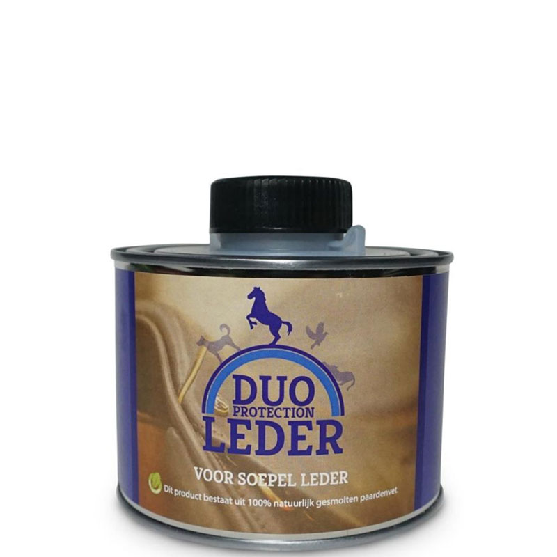 Duo Leder 500 ml. Ter bescherming en voor de voeding van het leer. Glycerine houdt het leer vochtig. Dit voorkomt uitdrogen en scheuren van het leer. Doordat leer een natuurlijk product is, is het juist goed om het ook met natuurlijk vet te behandelen. Door Duo Leder Leder te gebruiken bent U verzekerd van de juiste voeding.
