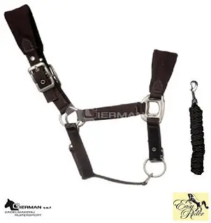 Easy Rider halster dat voorzien is van zachte brede kopriem en neusriem. De bakstukken van dit halster zijn zacht onderlegd. Halster is op 3 plekken verstelbaar door middel van gesp en wordt geleverd inclusief bijpassend halstertouw.