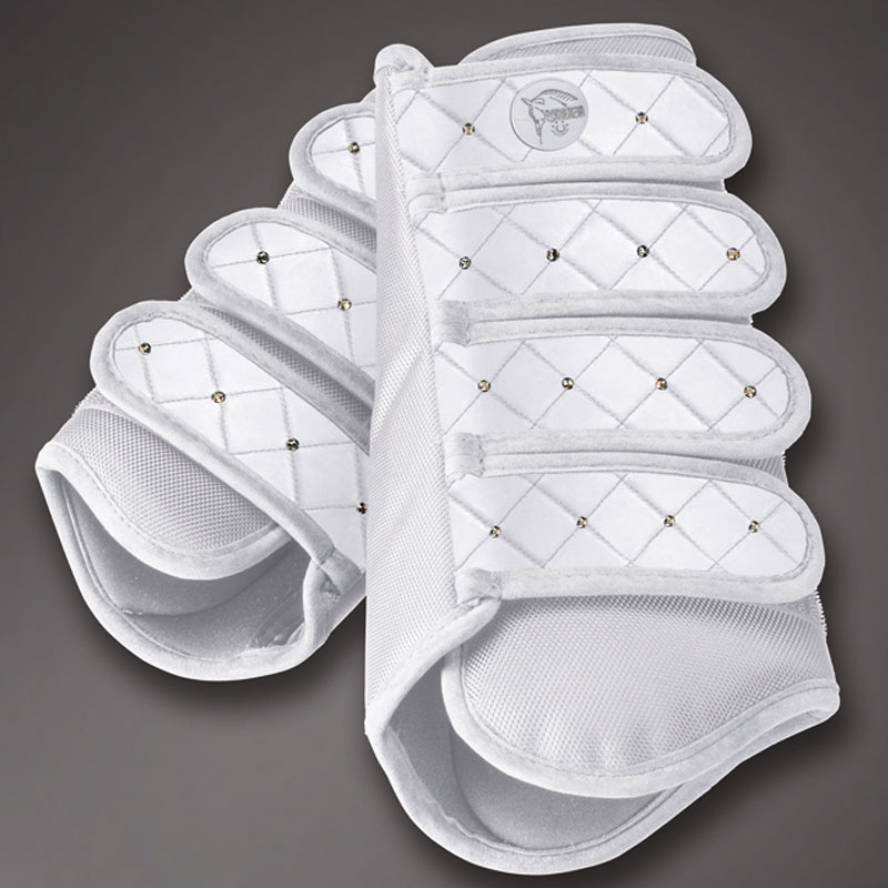 Een rondom gesloten peesbeschermer, waarbij tussen het onverslijtbare kunstlederen buitenmateriaal en de 5,5 mm dikke binnenvoering een harde schaal van TPE Flexisoft verwerkt is, die het paardenbeen beschermt tegen schokken. Door de vier klittenbandsluitingen is het aantrekken van de peesbeschermer kinderspel. Het PVC-buitenmateriaal is vuilafstotend en gemakkelijk te reinigen. De peesbeschermer is niet geschikt voor ritten in het water.