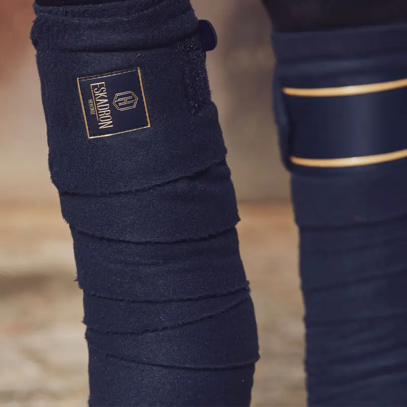 Goede kwaliteit Eskadron fleece bandages Heritage voorzien van stevige klittenbandsluiting en afgewerkt met goudkleurig Eskadron Heritage logo. De Eskadron bandages Heritage zijn verpakt per set van 4 stuks in luxe verpakking.
