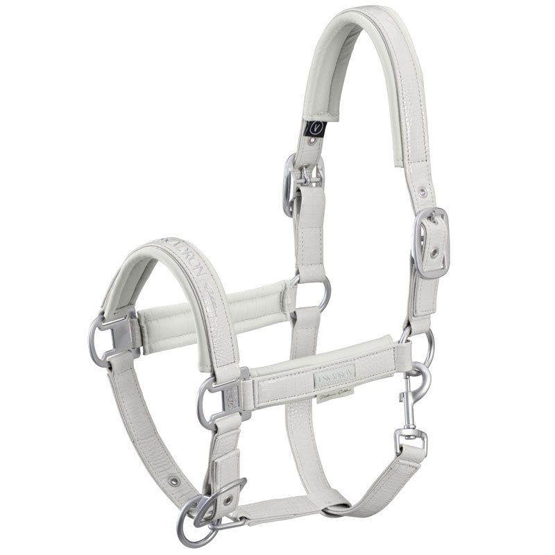 Het Eskadron halster Croco Platinum Pearl Grey is een schitterend halster volledig afgewerkt met een Croco print. Het halster is voorzien van een dubbel verstelbaar kopstuk een een verstelbare neusriem in combinatie met zacht voering.