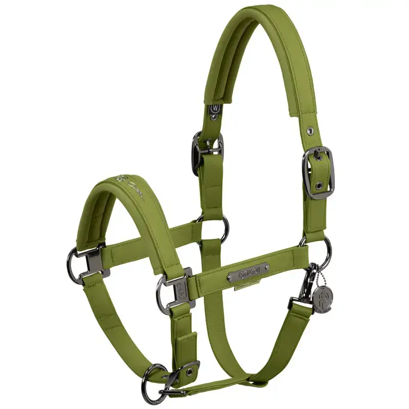 Het Eskadron Halster Faux Leather Platinum Moss Green is gemaakt uit kunstleder in combinatie met comfortabele en zachte neopreen voering onder het kopstuk en onder de neusriem. Het halster heeft een verstelbare neusriem en een dubbel verstelbaar kopstuk. Afgewerkt met Platinum Edition tekst op de neus.