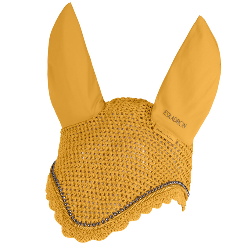 Eskadron Oornetje Pearls Platinum Golden Yellow gemaakt uit gehaakt materiaal in met elastische oren en afgewerkt met koordipping in combinatie met parels.